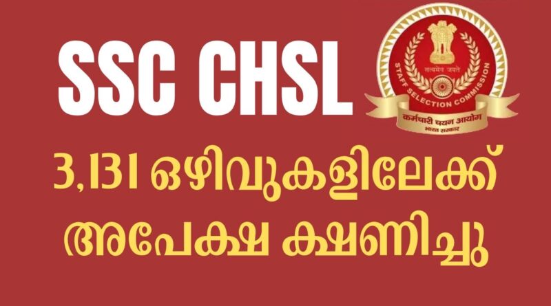 എസ് എസ് സി കംബൈൻഡ് ഹയർ സെക്കൻഡറി ലെവൽ പരീക്ഷ: 3,131 ഒഴിവുകളിലേക്ക് അപേക്ഷ ക്ഷണിച്ചു