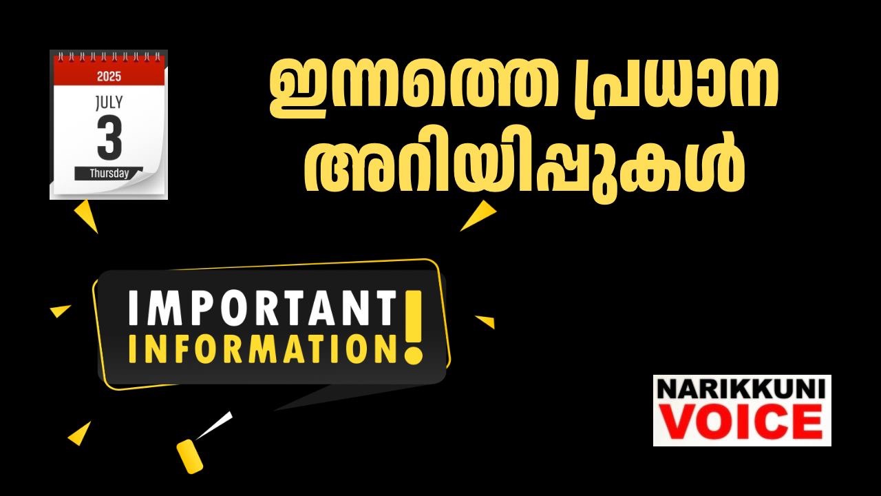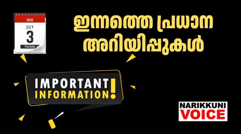 ഇന്നത്തെ പ്രധാന അറിയിപ്പുകൾ (03/07/2025)