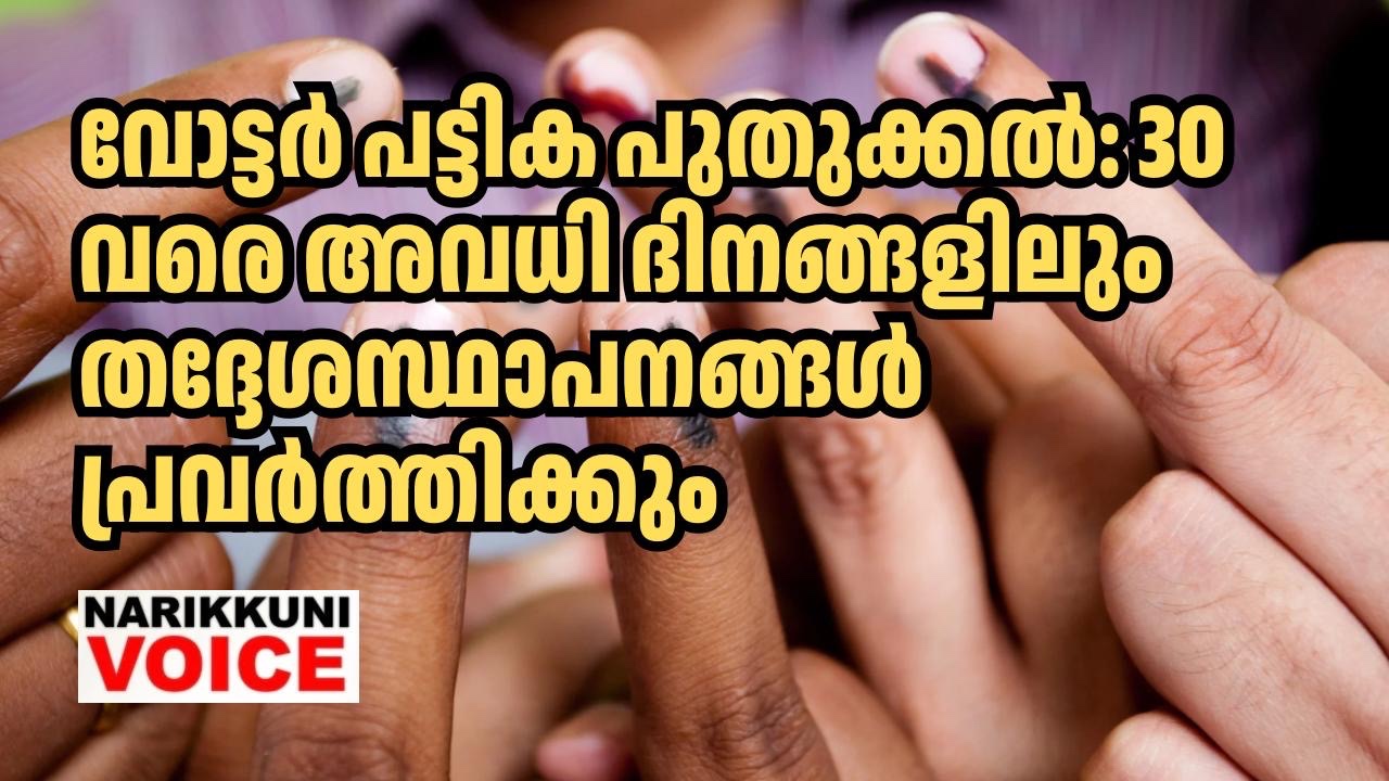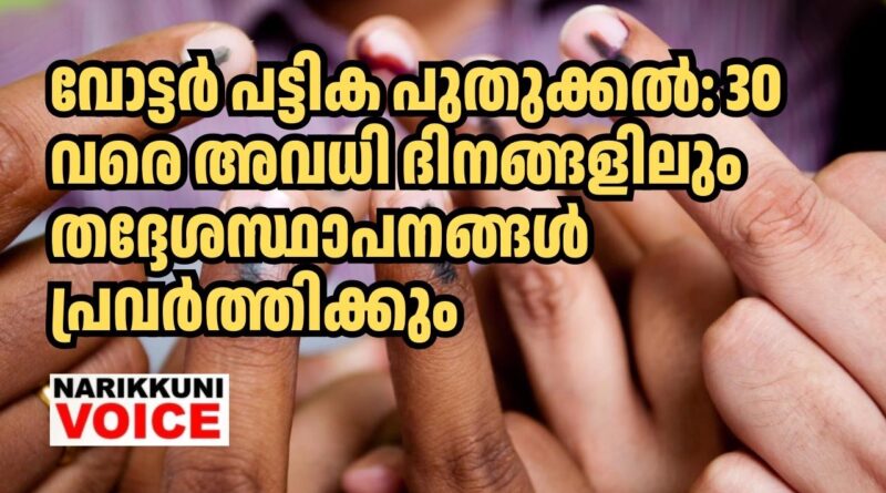 വോട്ടർ പട്ടിക പുതുക്കൽ: 30 വരെ അവധി ദിനങ്ങളിലും തദ്ദേശസ്ഥാപനങ്ങൾ പ്രവർത്തിക്കും