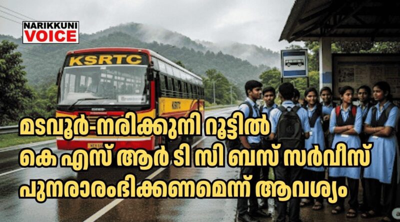 മടവൂർ-നരിക്കുനി റൂട്ടിൽ കെ എസ് ആർ ടി സി ബസ് സർവീസ് പുനരാരംഭിക്കണമെന്ന് ആവശ്യം