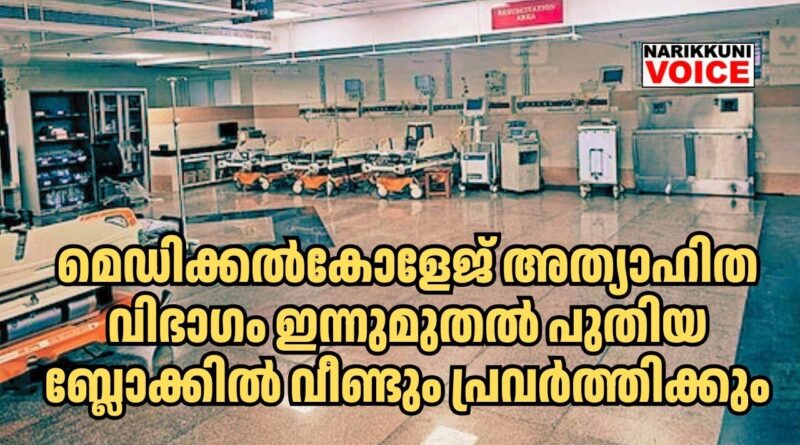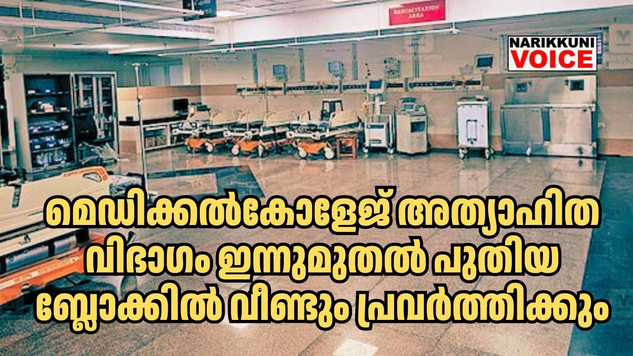 മെഡിക്കൽകോളേജ് അത്യാഹിത വിഭാഗം ഇന്നുമുതൽ പുതിയ ബ്ലോക്കിൽ വീണ്ടും പ്രവർത്തിക്കും
