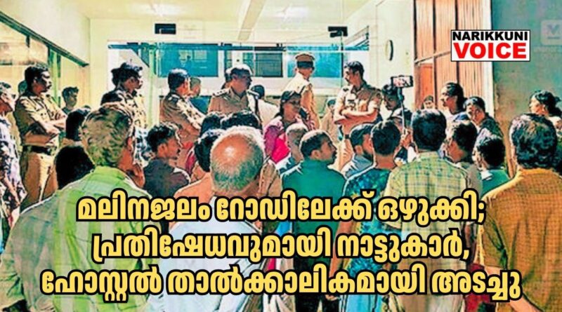 മലിനജലം റോഡിലേക്ക് ഒഴുക്കി; പ്രതിഷേധവുമായി നാട്ടുകാർ, ഹോസ്റ്റൽ താൽക്കാലികമായി അടച്ചു
